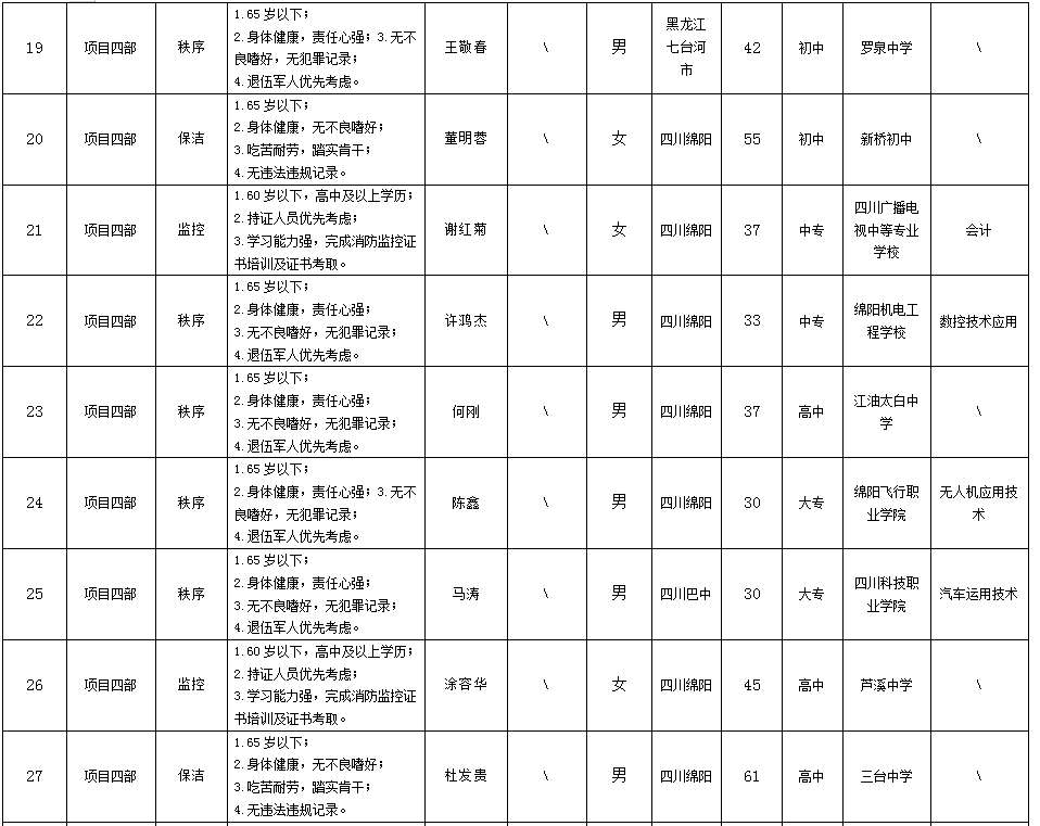 根據(jù)綿陽市康來物業(yè)服務(wù)有限公司發(fā)布的招聘公告及招聘相關(guān)規(guī)定,經(jīng)面試等程序,擬錄用向興容等同志到各項(xiàng)目部工作,現(xiàn)予以公示,具體情況如下:
