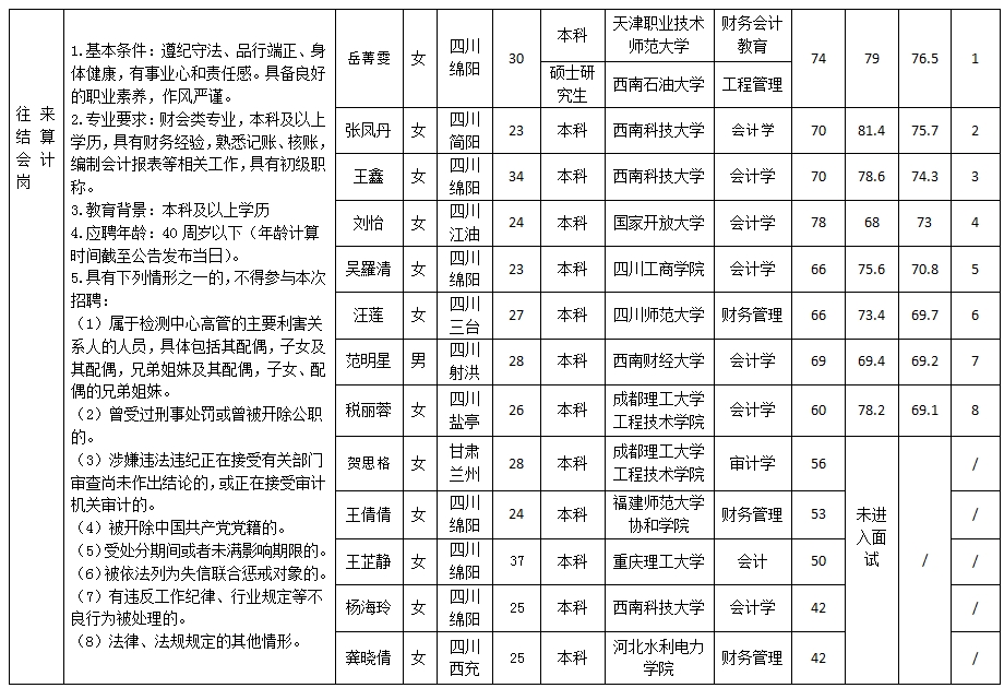根據(jù)綿陽市建設(shè)工程質(zhì)量檢測中心有限責(zé)任公司發(fā)布的招聘公告及招聘相關(guān)規(guī)定,現(xiàn)將筆試、面試成績予以公示。