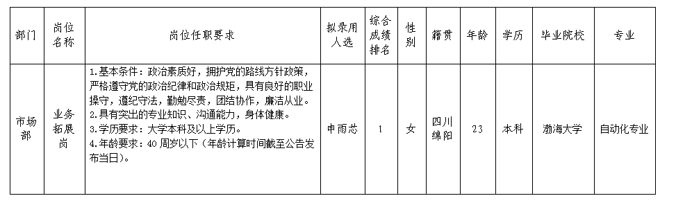 根據(jù)綿陽市建設(shè)工程質(zhì)量檢測中心有限責(zé)任公司發(fā)布的招聘公告及招聘相關(guān)規(guī)定,經(jīng)筆試、面試、背景調(diào)查、體檢等程序,擬錄用申雨芯同志到綿陽市建設(shè)工程質(zhì)量檢測中心有限責(zé)任公司工作,現(xiàn)予以公示,具體情況如下: