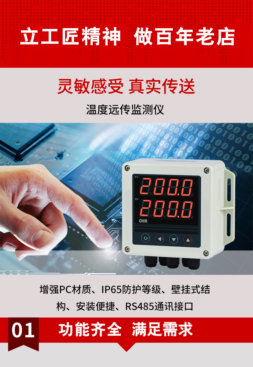 虹潤公司是專業(yè)生產(chǎn)多路溫度巡檢儀的國家專精特新“小巨人”企業(yè),生產(chǎn)的溫度遠(yuǎn)傳監(jiān)測儀,具有兩路PT100信號(hào)輸入,壁掛式結(jié)構(gòu),IP65防護(hù)等級(jí),高抗干擾,帶RS485通訊輸出等特點(diǎn)。產(chǎn)品獲得巡回檢測顯示方法及裝置、儀表殼體等2項(xiàng)國家發(fā)明專利,主持起草工業(yè)過程控制系統(tǒng)用模擬輸入兩位或多位輸出儀表、物聯(lián)網(wǎng)智能溫度儀表通用技術(shù)條件等2項(xiàng)國家標(biāo)準(zhǔn)以及通信系統(tǒng)多通道數(shù)據(jù)采集控制終端規(guī)范軍用標(biāo)準(zhǔn),參與國際5G標(biāo)準(zhǔn)制定,取得雙路回路溫度遠(yuǎn)傳監(jiān)測儀等2項(xiàng)相關(guān)軟件著作權(quán)。產(chǎn)品廣泛應(yīng)用于電力、石化、冶金、制藥、水處理、機(jī)械配套等各種工業(yè)現(xiàn)場。