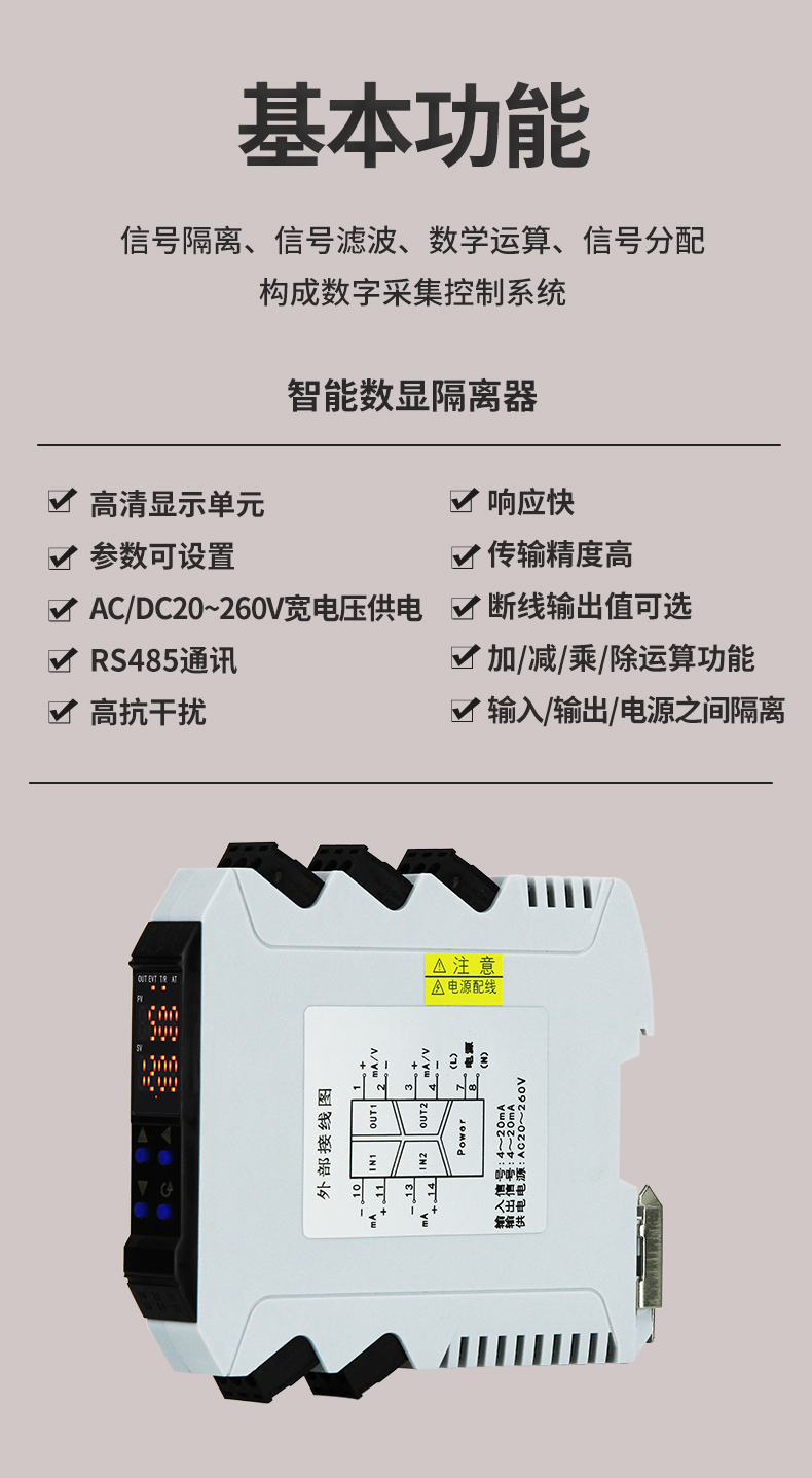 虹潤公司是專業(yè)生產(chǎn)隔離器的國家專精特新“小巨人”企業(yè)。生產(chǎn)的導(dǎo)軌式智能隔離器 ,具有高清顯示單元,參數(shù)可設(shè)置,寬電源供電,響應(yīng)快,帶RS485通訊等特點(diǎn)。產(chǎn)品獲得信號隔離器、一種二端子模塊、無源信號隔離器等3項(xiàng)國家發(fā)明專利,主持起草現(xiàn)場設(shè)備工具(FDT)接口規(guī)范、工業(yè)過程測量和控制系統(tǒng)用隔離式安全柵、工業(yè)過程測量和控制系統(tǒng)用配電器等3項(xiàng)國家標(biāo)準(zhǔn),以及通信系統(tǒng)多通道數(shù)據(jù)采集控制終端規(guī)范軍用標(biāo)準(zhǔn),參與國際5G標(biāo)準(zhǔn)制定,取得智能隔離器等2項(xiàng)相關(guān)軟件著作權(quán)。產(chǎn)品廣泛應(yīng)用于電力、石化,冶金、制藥、水處理、機(jī)械配套等各種工業(yè)現(xiàn)場。