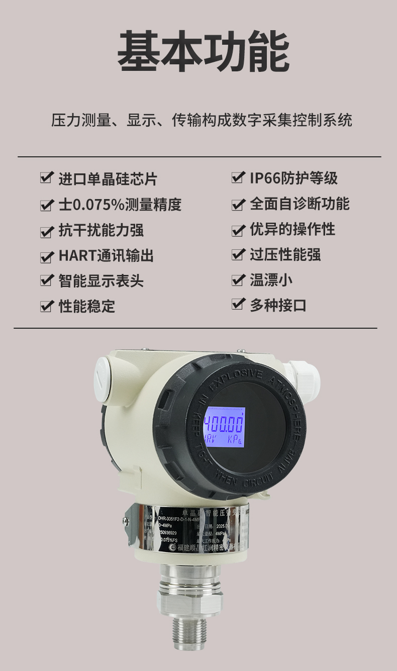 虹潤公司是專業(yè)生產(chǎn)壓力變送器的國家專精特新“小巨人”企業(yè),生產(chǎn)的單晶硅壓力變送器,具有高精度,小溫漂,性能穩(wěn)定,帶HART通訊,抗干擾能力強(qiáng),自診斷功能等特點(diǎn)。產(chǎn)品獲得一種數(shù)字顯示低功耗壓力表、一種信號(hào)發(fā)生器裝置等2項(xiàng)國家發(fā)明專利,主持起草工業(yè)過程控制系統(tǒng)用模擬輸入兩位或多位輸出儀表、工業(yè)過程測量和控制系統(tǒng)用壓力/差壓變送器等2項(xiàng)國家標(biāo)準(zhǔn),通信系統(tǒng)多通道數(shù)據(jù)采集控制終端規(guī)范軍用標(biāo)準(zhǔn),以及現(xiàn)場設(shè)備集成等5項(xiàng)智能制造國家標(biāo)準(zhǔn)。參與國際5G標(biāo)準(zhǔn)制定,取得數(shù)顯壓力表等2項(xiàng)相關(guān)軟件著作權(quán)。產(chǎn)品廣泛應(yīng)用于化工、食品、制藥、電力、設(shè)備配套、供暖、水處理、樓宇等行業(yè),需精準(zhǔn)測量流體壓力的現(xiàn)場。