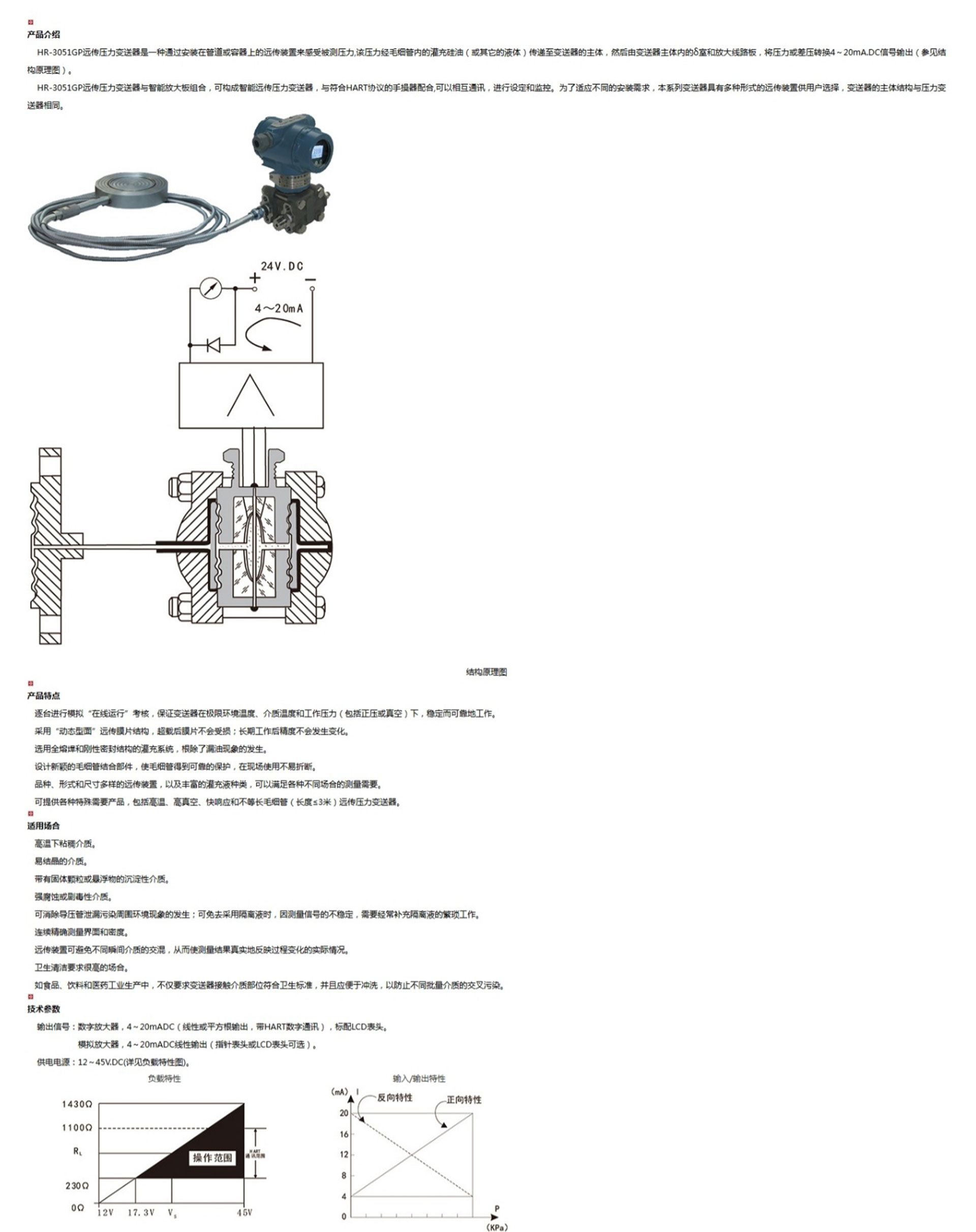 HR-3051GP遠(yuǎn)傳壓力變送器