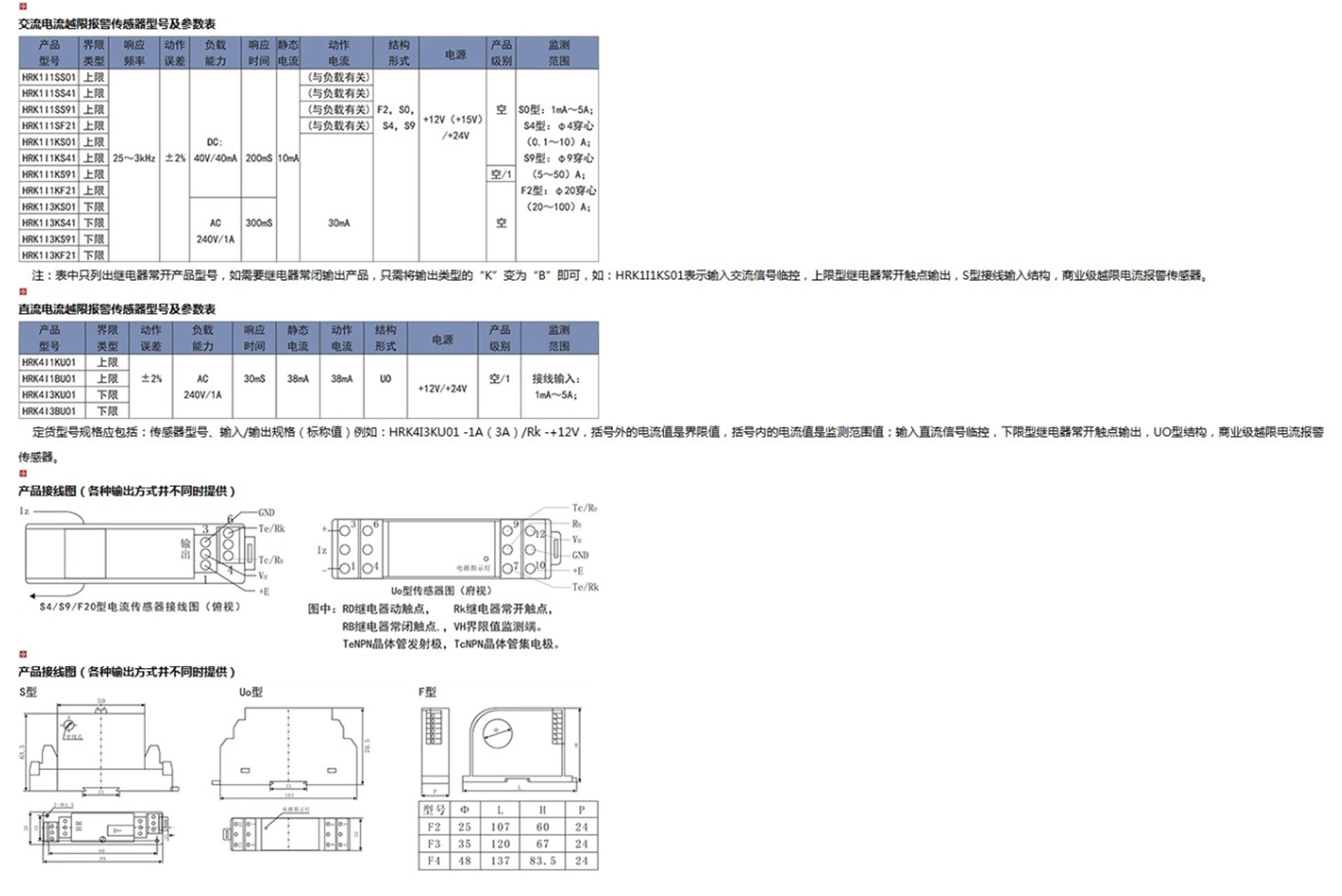 電流越限報警傳感器以HR系列電量隔離傳感器為基礎(chǔ),增配比較器電路、基準(zhǔn)電壓設(shè)定電路、輸出驅(qū)動電路組成,用來隔離監(jiān)測主回路中的交流或直流電流,當(dāng)被監(jiān)測的電量超過預(yù)先設(shè)定的上限值,或低于預(yù)先設(shè)定的下限值時,給出開關(guān)量控制信號。